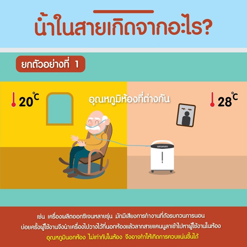 ลูกค้ามักจะโทรศัพท์ หรือ line จากลูกค้าเข้ามาสอบถาม เรื่องปัญหาน้ำในสาย ซึ่งทำให้ผู้ใช้งานเครื่องผลิตออกซิเจนเกิดความกังวลใจ ว่าน้ำที่อยู่ภายในสายจะไหลเข้าไปในจมูกผู้ป่วยหรือไม่ในขณะใช้งาน โดยเฉพาใช้ในเวลานอนหลับ และอาจทำให้เกิดอาการไม่พึงประสงค์ต่อระบบทางเดินหายใจ บทความนี้ทางผู้เขียนจะมาช่วยให้ความกระจ่างถึงปัญหาน้ำในสาย และการแก้ไข ในแบบต่าง ๆ เพื่อเป็นแนวทางในการใช้งานเครื่องผลิตออกซิเจนของเราได้อย่างมั่นใจยิ่งขึ้น